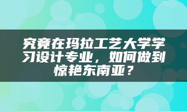 在东南亚这片充满活力与创意的土地上,设计行业正以前所未有的速度蓬勃发展,成为推动区域经济和文化繁荣的重要力量。玛拉工艺大学(UniversitiTeknologiMARA,简称UITM)作为...